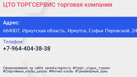 ЦТО ТОРГСЕРВИС, торговая компания по адресу 664007, Иркутская область, Иркутск, Софьи Перовской, 24 в дальнейшем Организация, размещена в следующих категориях: