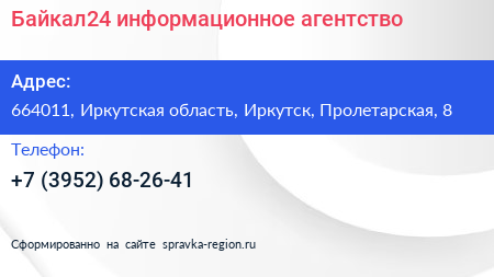 Байкал24, информационное агентство по адресу 664011, Иркутская область, Иркутск, Пролетарская, 8 в дальнейшем Организация, размещена в следующих категориях: