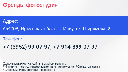 Френды, фотостудия по адресу 664009, Иркутская область, Иркутск, Ширямова, 2 в дальнейшем Организация, размещена в следующих категориях: