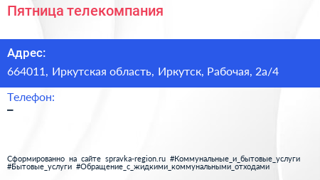 Пятница!, телекомпания по адресу 664011, Иркутская область, Иркутск, Рабочая, 2а/4 в дальнейшем Организация, размещена в следующих категориях: