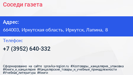 Соседи, газета по адресу 664003, Иркутская область, Иркутск, Лапина, 8 в дальнейшем Организация, размещена в следующих категориях: