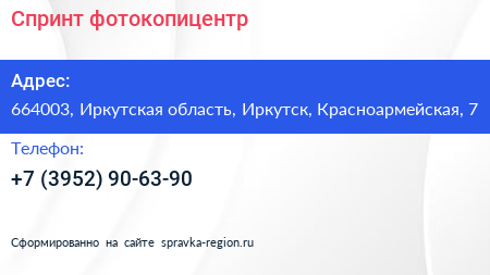 Спринт, фотокопицентр по адресу 664003, Иркутская область, Иркутск, Красноармейская, 7 в дальнейшем Организация, размещена в следующих категориях: