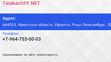 TarakanOFF.NET по адресу 664013, Иркутская область, Иркутск, Розы Люксембург, 30 в дальнейшем Организация, размещена в следующих категориях: