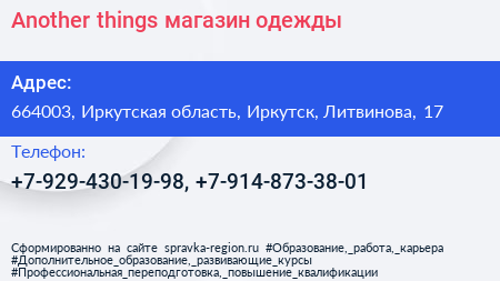 Another things, магазин одежды по адресу 664003, Иркутская область, Иркутск, Литвинова, 17 в дальнейшем Организация, размещена в следующих категориях: