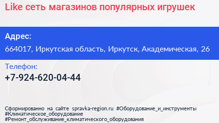 Like, сеть магазинов популярных игрушек по адресу 664017, Иркутская область, Иркутск, Академическая, 26 в дальнейшем Организация, размещена в следующих категориях: