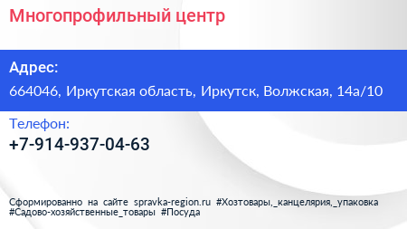 Многопрофильный центр по адресу 664046, Иркутская область, Иркутск, Волжская, 14а/10 в дальнейшем Организация, размещена в следующих категориях: