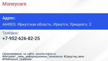 Moneycare по адресу 664003, Иркутская область, Иркутск, Урицкого, 2 в дальнейшем Организация, размещена в следующих категориях:
