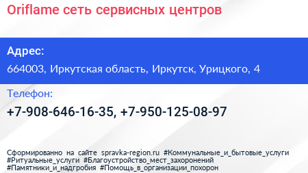 Oriflame, сеть сервисных центров по адресу 664003, Иркутская область, Иркутск, Урицкого, 4 в дальнейшем Организация, размещена в следующих категориях: