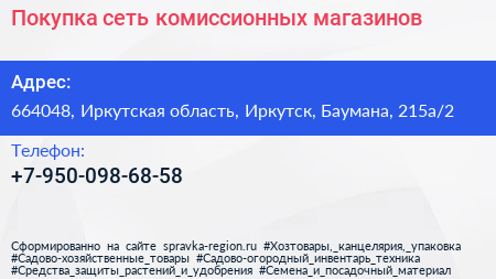 Покупка, сеть комиссионных магазинов по адресу 664048, Иркутская область, Иркутск, Баумана, 215а/2 в дальнейшем Организация, размещена в следующих категориях: