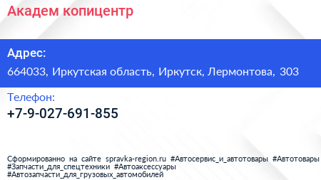 Академ, копицентр по адресу 664033, Иркутская область, Иркутск, Лермонтова, 303 в дальнейшем Организация, размещена в следующих категориях: