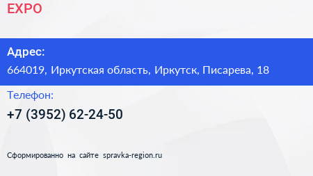 EXPO по адресу 664019, Иркутская область, Иркутск, Писарева, 18 в дальнейшем Организация, размещена в следующих категориях: