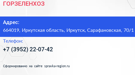 ГОРЗЕЛЕНХОЗ по адресу 664019, Иркутская область, Иркутск, Сарафановская, 70/1 в дальнейшем Организация, размещена в следующих категориях: