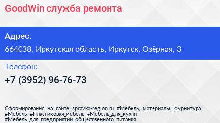 GoodWin, служба ремонта по адресу 664038, Иркутская область, Иркутск, Озёрная, 3 в дальнейшем Организация, размещена в следующих категориях: