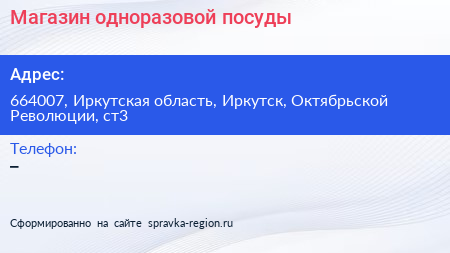 Магазин одноразовой посуды по адресу 664007, Иркутская область, Иркутск, Октябрьской Революции, ст3 в дальнейшем Организация, размещена в следующих категориях: