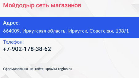 Мойдодыр, сеть магазинов по адресу 664009, Иркутская область, Иркутск, Советская, 138/1 в дальнейшем Организация, размещена в следующих категориях: