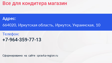 Все для кондитера, магазин по адресу 664020, Иркутская область, Иркутск, Украинская, 10 в дальнейшем Организация, размещена в следующих категориях:
