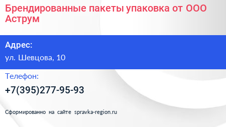 Брендированные пакеты, упаковка от ООО «Аструм» по адресу ул. Шевцова, 10 в дальнейшем Организация, размещена в следующих категориях: