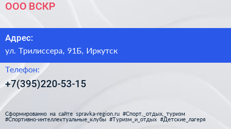 ООО «ВСКР» по адресу ул. Трилиссера, 91Б, Иркутск в дальнейшем Организация, размещена в следующих категориях: