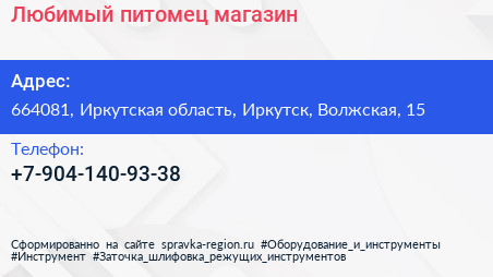 Любимый питомец, магазин по адресу 664081, Иркутская область, Иркутск, Волжская, 15 в дальнейшем Организация, размещена в следующих категориях: