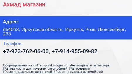 Ахмад, магазин по адресу 664053, Иркутская область, Иркутск, Розы Люксембург, 293 в дальнейшем Организация, размещена в следующих категориях: