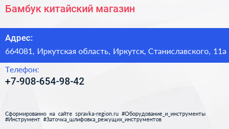 Бамбук, китайский магазин по адресу 664081, Иркутская область, Иркутск, Станиславского, 11а в дальнейшем Организация, размещена в следующих категориях: