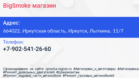 BigSmoke, магазин по адресу 664022, Иркутская область, Иркутск, Лыткина, 11/7 в дальнейшем Организация, размещена в следующих категориях: