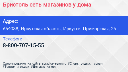 Бристоль, сеть магазинов у дома по адресу 664038, Иркутская область, Иркутск, Приморская, 25 в дальнейшем Организация, размещена в следующих категориях: