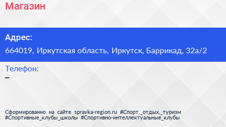 Магазин по адресу 664019, Иркутская область, Иркутск, Баррикад, 32а/2 в дальнейшем Организация, размещена в следующих категориях: