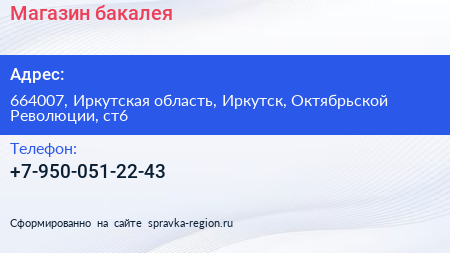 Магазин-бакалея по адресу 664007, Иркутская область, Иркутск, Октябрьской Революции, ст6 в дальнейшем Организация, размещена в следующих категориях: