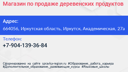 Магазин по продаже деревенских продуктов по адресу 664056, Иркутская область, Иркутск, Академическая, 27а в дальнейшем Организация, размещена в следующих категориях: