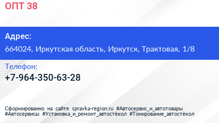 ОПТ 38 по адресу 664024, Иркутская область, Иркутск, Трактовая, 1/8 в дальнейшем Организация, размещена в следующих категориях: