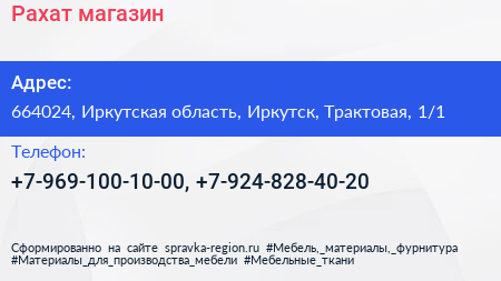Рахат, магазин по адресу 664024, Иркутская область, Иркутск, Трактовая, 1/1 в дальнейшем Организация, размещена в следующих категориях: