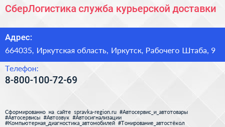 СберЛогистика, служба курьерской доставки по адресу 664035, Иркутская область, Иркутск, Рабочего Штаба, 9 в дальнейшем Организация, размещена в следующих категориях: