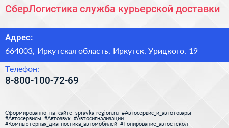 СберЛогистика, служба курьерской доставки по адресу 664003, Иркутская область, Иркутск, Урицкого, 19 в дальнейшем Организация, размещена в следующих категориях: