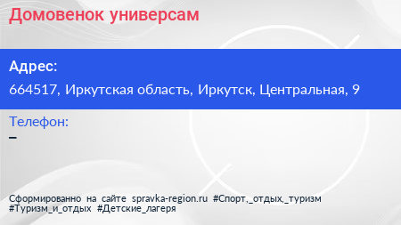 Домовенок, универсам по адресу 664517, Иркутская область, Иркутск, Центральная, 9 в дальнейшем Организация, размещена в следующих категориях:
