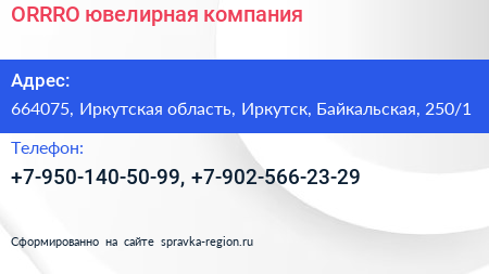 ORRRO, ювелирная компания по адресу 664075, Иркутская область, Иркутск, Байкальская, 250/1 в дальнейшем Организация, размещена в следующих категориях: