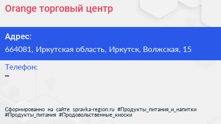 Orange, торговый центр по адресу 664081, Иркутская область, Иркутск, Волжская, 15 в дальнейшем Организация, размещена в следующих категориях: