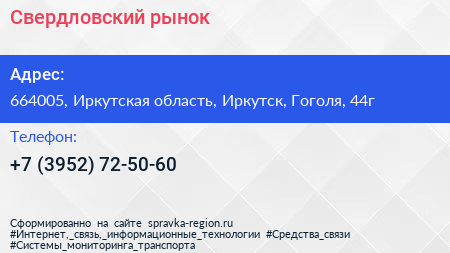 Свердловский, рынок по адресу 664005, Иркутская область, Иркутск, Гоголя, 44г в дальнейшем Организация, размещена в следующих категориях:
