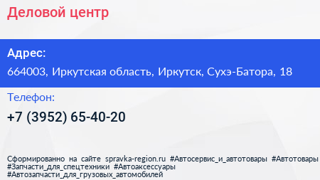 Деловой центр по адресу 664003, Иркутская область, Иркутск, Сухэ-Батора, 18 в дальнейшем Организация, размещена в следующих категориях: