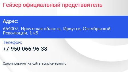 Гейзер, официальный представитель по адресу 664007, Иркутская область, Иркутск, Октябрьской Революции, 1 к5 в дальнейшем Организация, размещена в следующих категориях: