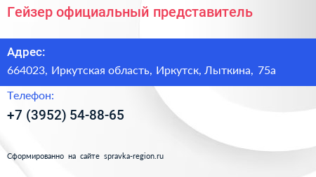 Гейзер, официальный представитель по адресу 664023, Иркутская область, Иркутск, Лыткина, 75а в дальнейшем Организация, размещена в следующих категориях:
