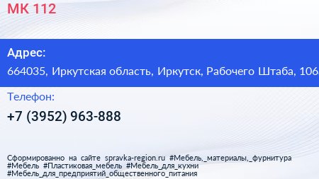 МК-112 по адресу 664035, Иркутская область, Иркутск, Рабочего Штаба, 106а в дальнейшем Организация, размещена в следующих категориях: