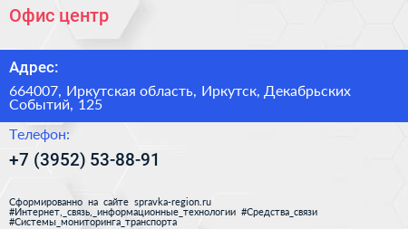 Офис-центр по адресу 664007, Иркутская область, Иркутск, Декабрьских Событий, 125 в дальнейшем Организация, размещена в следующих категориях:
