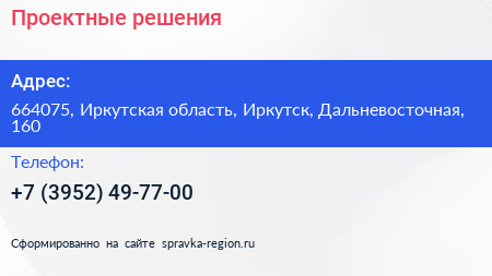 Проектные решения по адресу 664075, Иркутская область, Иркутск, Дальневосточная, 160 в дальнейшем Организация, размещена в следующих категориях: