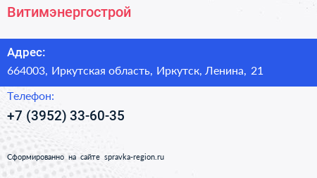 Витимэнергострой по адресу 664003, Иркутская область, Иркутск, Ленина, 21 в дальнейшем Организация, размещена в следующих категориях: