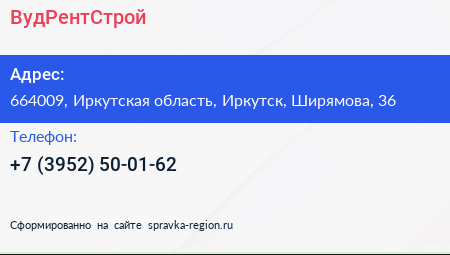 ВудРентСтрой по адресу 664009, Иркутская область, Иркутск, Ширямова, 36 в дальнейшем Организация, размещена в следующих категориях: