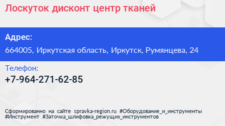 Лоскуток, дисконт-центр тканей по адресу 664005, Иркутская область, Иркутск, Румянцева, 24 в дальнейшем Организация, размещена в следующих категориях: