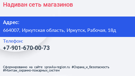 Надиван, сеть магазинов по адресу 664007, Иркутская область, Иркутск, Рабочая, 18д в дальнейшем Организация, размещена в следующих категориях: