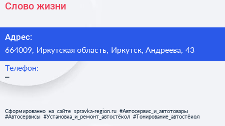 Слово жизни по адресу 664009, Иркутская область, Иркутск, Андреева, 43 в дальнейшем Организация, размещена в следующих категориях: