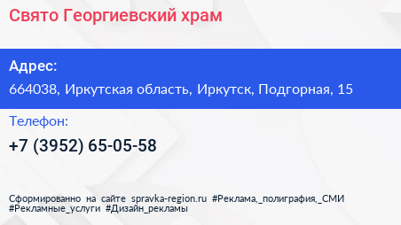 Свято-Георгиевский храм по адресу 664038, Иркутская область, Иркутск, Подгорная, 15 в дальнейшем Организация, размещена в следующих категориях: